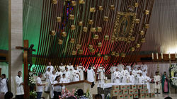 alumnos y autoridades eclesiales en la Basílica de Guadalupe